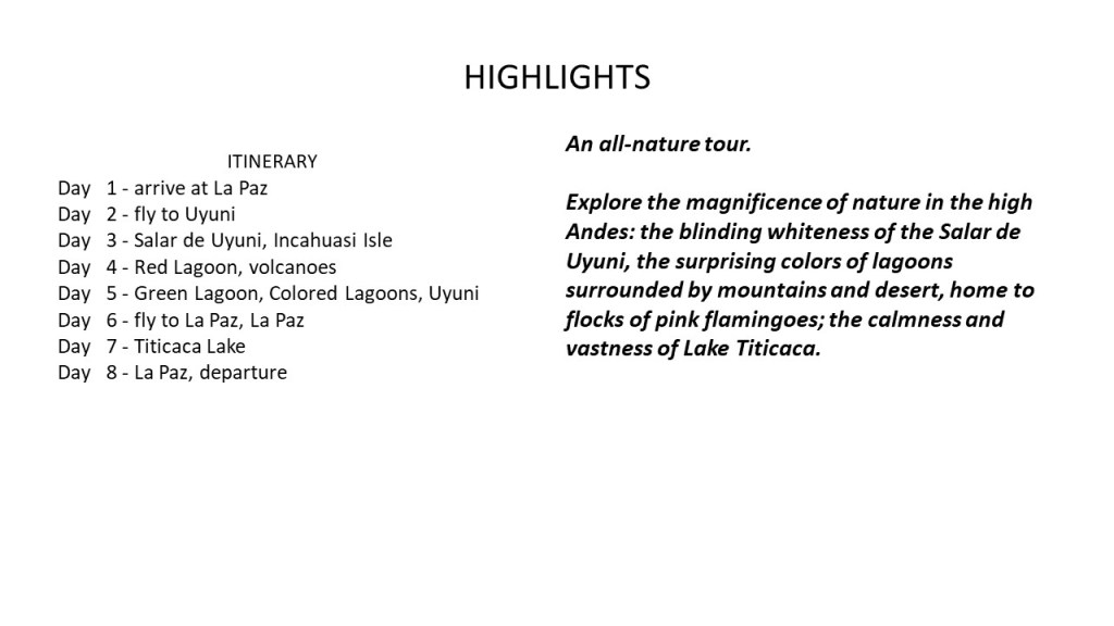 Bolivia high-altitude aventures – Detailed itinerary